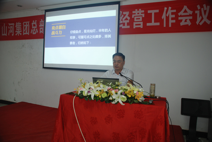 七月的大崎山之巔松濤陣陣,清風(fēng)拂面。山河集團(tuán)總部2013年上半年經(jīng)營工作會(huì)議于7月27日在這里隆重召開,這是集團(tuán)公司自湖北區(qū)域公司從總部分離之后召開的第一次半年經(jīng)營工作會(huì)議,參會(huì)人員共計(jì)五十余人,會(huì)議分上午場和下午場,由集團(tuán)公司總經(jīng)理龔衛(wèi)國同志主持。