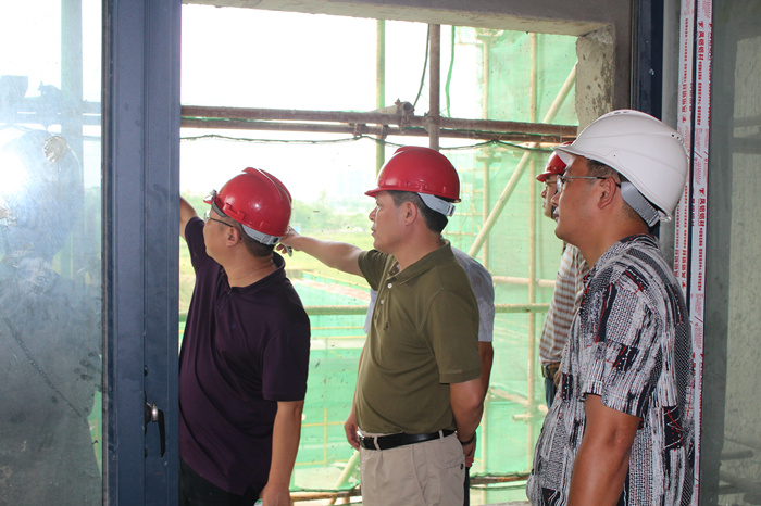 在正在裝修的樣板間內(nèi),董事長(zhǎng)一行對(duì)櫥柜、地板等每個(gè)細(xì)節(jié)一一進(jìn)行檢查,并聽(tīng)取現(xiàn)場(chǎng)工程人員說(shuō)明。因上周超強(qiáng)臺(tái)風(fēng)“尤特”對(duì)工程現(xiàn)場(chǎng)造成了部分損壞,董事長(zhǎng)特別交代日后務(wù)必加強(qiáng)防范。為了能將房子早日交到業(yè)主手中,也對(duì)工程部做出要求:加快工程進(jìn)度的同時(shí),工程質(zhì)量也必須嚴(yán)格把關(guān)!在工作過(guò)程中遇到什么困難,及時(shí)向上反映,公司會(huì)作為強(qiáng)有力的后盾,給予支持。
