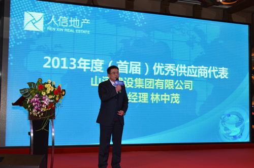 12月29日,山河集團(tuán)副總經(jīng)理兼湖北公司總經(jīng)理林中茂出席人信地產(chǎn)2013年度(首屆)供方代表大會(huì)。來(lái)自全球范圍內(nèi)的近200名優(yōu)秀供應(yīng)商代表應(yīng)邀參會(huì),山河集團(tuán)榮獲首屆“優(yōu)秀供應(yīng)商”。