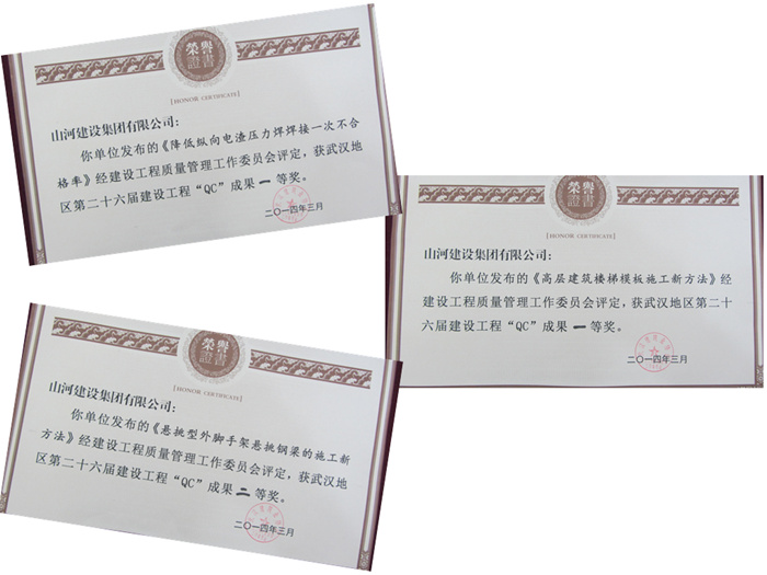 2013年,集團(tuán)及區(qū)域公司技術(shù)部門和項(xiàng)目部的相關(guān)技術(shù)管理人員,針對(duì)施工過(guò)程中存在的質(zhì)量問(wèn)題,圍繞健全制度、提高質(zhì)量、創(chuàng)造效益為核心,積極開(kāi)展QC活動(dòng),上述獲獎(jiǎng)的QC成果就是其中的代表。本次QC成果發(fā)布,漢陽(yáng)人信匯項(xiàng)目的《高層建筑樓梯模板施工新方法》、招商雍華府項(xiàng)目的《降低縱向電渣壓力焊焊接一次不合格率》獲得市一等獎(jiǎng),奧山世紀(jì)城項(xiàng)目的《懸挑型外腳手架懸挑鋼梁的施工新方法》獲得市二等獎(jiǎng)。取得這樣的成績(jī),得益于集團(tuán)公司及區(qū)域公司領(lǐng)導(dǎo)的支持和項(xiàng)目部各位同仁的共同努力。