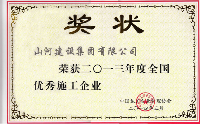 全國優(yōu)秀施工企業(yè)評選由中國施工企業(yè)管理協(xié)會主辦,每年進(jìn)行一次。旨在表彰先進(jìn),樹立典型,推廣經(jīng)驗,促進(jìn)企業(yè)發(fā)展;弘揚優(yōu)秀施工企業(yè)創(chuàng)新進(jìn)取、頑強拼搏、奉獻(xiàn)社會的精神。經(jīng)“全國優(yōu)秀施工企業(yè)”評審委員會審定,山河集團(tuán)在眾多企業(yè)中脫穎而出,以優(yōu)異成績獲得殊榮。