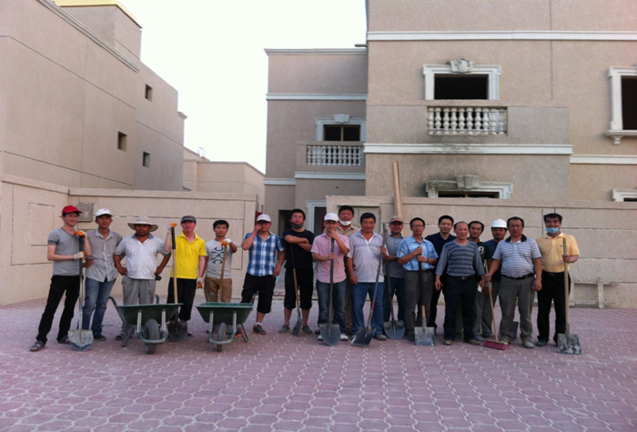 6月的科威特,溫度高達46℃,即使到了晚間6點也還有40℃,可項目現(xiàn)場仍一片忙碌,抬鋼管的、搬模板的、提灰桶的,一片熱火朝天。因項目工期緊,山河集團科威特項目的管理人員和項目經(jīng)理自發(fā)行動起來,參與到項目部的勞動中,與時間賽跑,與工期接力。