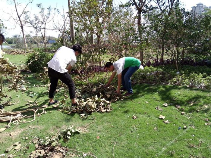 狂風(fēng)吹不走恒正人的堅(jiān)強(qiáng)、暴雨也不能刷去“琥珀”的美麗!7月19日至24日,全體恒正員工頂驕陽(yáng),戰(zhàn)高溫迅速開(kāi)展自救,一顆顆傾覆的苗木被扶正重植、一片片狼藉的區(qū)域被清掃、一處處房間、陽(yáng)臺(tái)積水被清理,“琥珀悠瀾”在我們的自救中正一步步找回昔日美麗!