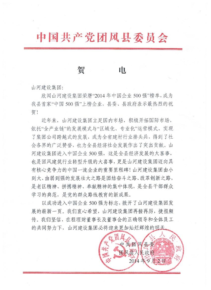 中國共產(chǎn)黨團風縣委員會賀電
