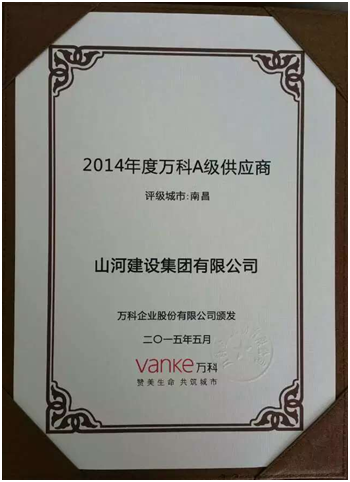 山河集團獲評萬科 “2014年度A級供應(yīng)商”