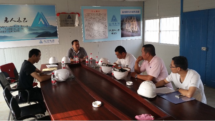 隨后,在金地格林小城項(xiàng)目安全生產(chǎn)會(huì)上。劉總一行認(rèn)真聽(tīng)取了項(xiàng)目部管理人員的工作匯報(bào)。他指出,項(xiàng)目部要突出“一個(gè)目標(biāo)”,即強(qiáng)化安全紅線意識(shí),促進(jìn)企業(yè)安全發(fā)展;實(shí)施“兩個(gè)舉措”,不僅要宣傳發(fā)動(dòng)舉措,還要全面檢查舉措。要求“三個(gè)定位”,即對(duì)存在的安全隱患要定位整改時(shí)間、定位整改內(nèi)容、定位整改責(zé)任。劉總還強(qiáng)調(diào)安全工作要做到“四個(gè)落實(shí)”:落實(shí)安全專項(xiàng)方案、落實(shí)安全專項(xiàng)資金、落實(shí)安全專人管理、落實(shí)安全督促檢查。