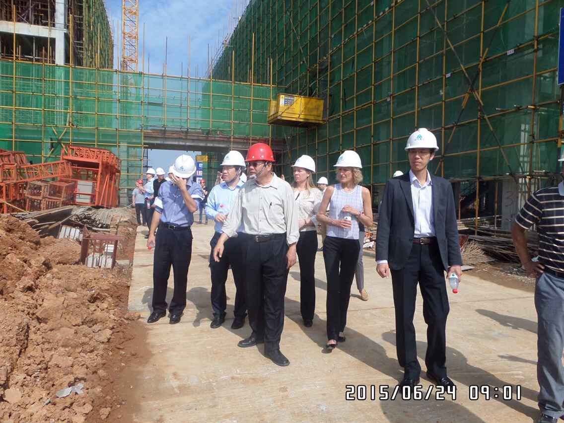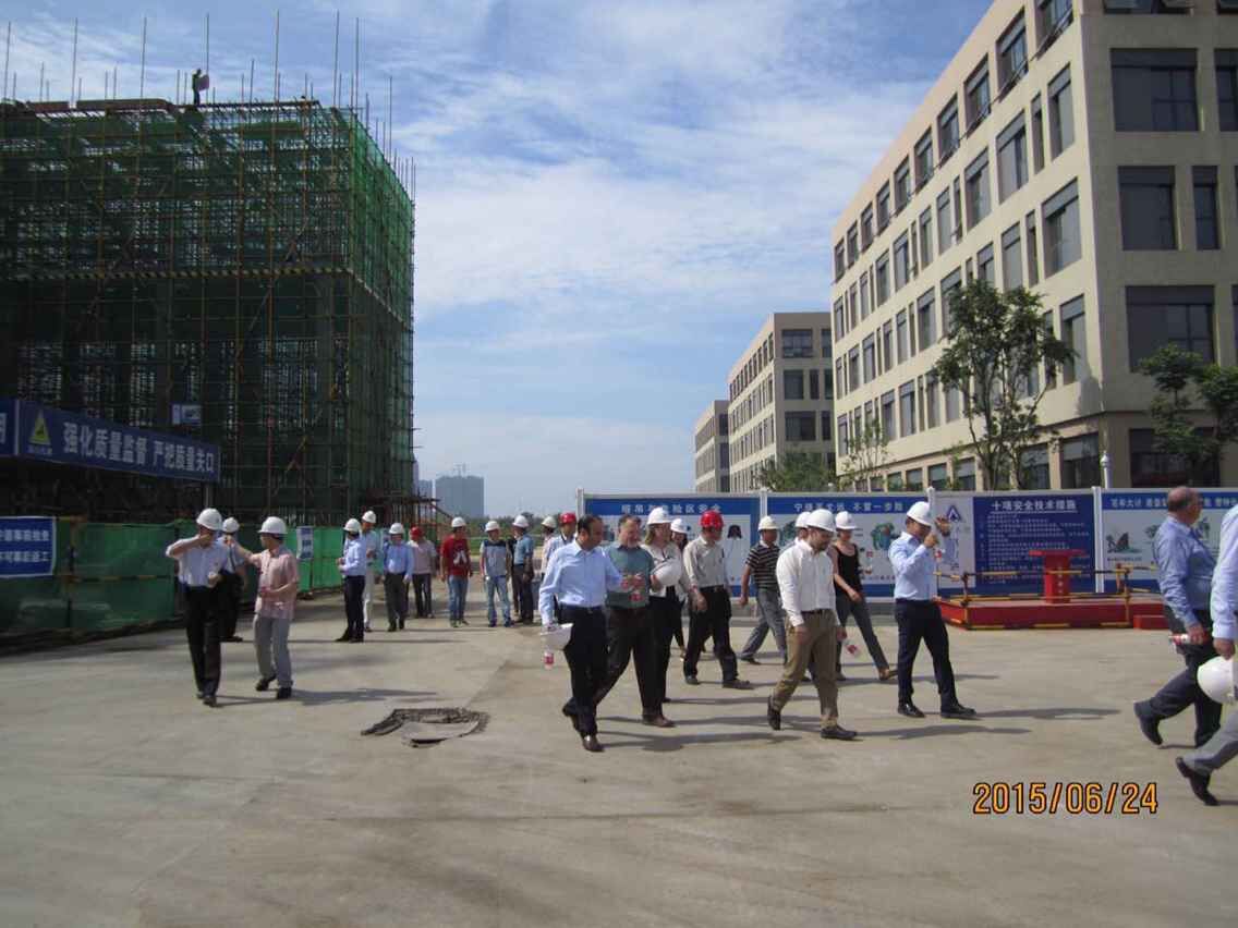 6月24日上午,武漢光谷國際生物醫(yī)藥企業(yè)加速器2.1期項(xiàng)目迎來最高規(guī)模的檢查。美國通用集團(tuán)和德國美施威爾領(lǐng)導(dǎo)蒞臨現(xiàn)場視察,對項(xiàng)目的工程質(zhì)量、安全施工要求、夏季施工程序、工程監(jiān)理等細(xì)節(jié)進(jìn)行了嚴(yán)格細(xì)致的查看。