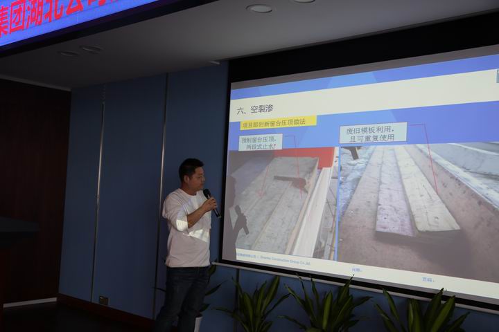 本次培訓(xùn)共設(shè)主會場1個,分會場一個(襄陽),共計150余人參加培訓(xùn),培訓(xùn)主要分為三個環(huán)節(jié):第一,質(zhì)量通病防治基本知識講述;第二,典型項目部經(jīng)驗交流發(fā)言;第三,各項目部參會代表自由發(fā)言。會議由工程部經(jīng)理陳敬章主持。