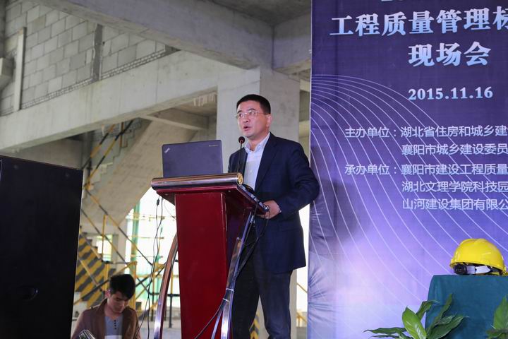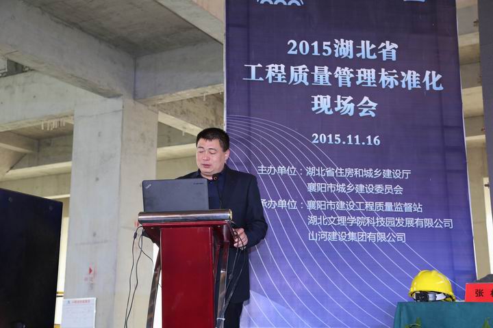 11月16日上午,湖北省工程質(zhì)量管理標(biāo)準(zhǔn)化現(xiàn)場(chǎng)會(huì)在湖北文理學(xué)院科技園工研院項(xiàng)目召開。省質(zhì)安總站副站長董文斌,襄陽市建委副主任盧一平、質(zhì)檢站黨委書記倪海青、站長張林、副站長黃先明,湖北文理學(xué)院校黨委常委副校長魏躍春,湖北文理學(xué)院科技園發(fā)展有限公司副總經(jīng)理寇國良,山河集團(tuán)常務(wù)副總經(jīng)理兼湖北公司總經(jīng)理林中茂、湖北公司副總經(jīng)理羅定軍、詹必強(qiáng)等參加了會(huì)議。襄陽市工程質(zhì)量監(jiān)督檢查站站長張林主持會(huì)議。