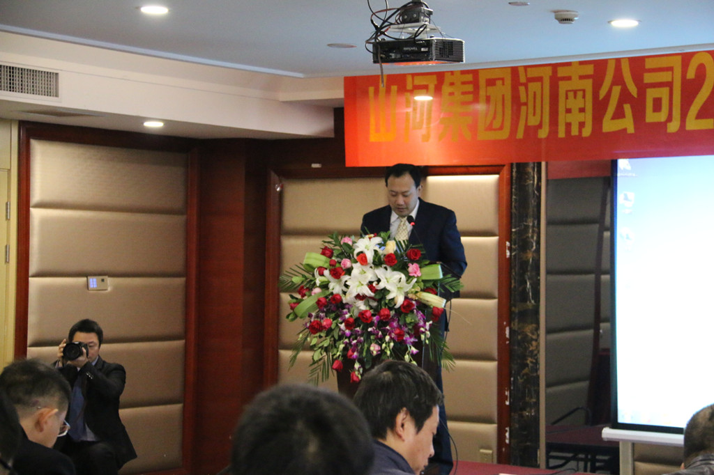 2016年1月16日上午,河南公司2015工作會(huì)議暨表彰大會(huì)在鄭州格林東方酒店隆重舉行。河南公司全體員工、項(xiàng)目經(jīng)理、項(xiàng)目部主要管理人員、表彰人員等共計(jì)70余人參加了此次會(huì)議。山河集團(tuán)常務(wù)副總兼湖北公司總經(jīng)理林中茂、河南公司總經(jīng)理馬文敏等領(lǐng)導(dǎo)參加了本次會(huì)議。大會(huì)由河南公司副總經(jīng)理余亮主持。