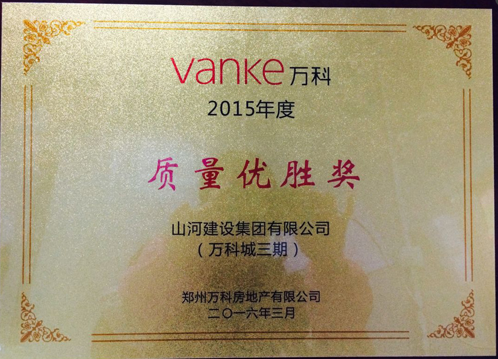 3月10日,鄭州萬科房地產(chǎn)有限公司舉辦了“2016合作方目標(biāo)與行動(dòng)溝通會(huì)暨頒獎(jiǎng)典禮”,與鄭州萬科合作的各家單位均有代表參加會(huì)議。山河集團(tuán)憑借過硬的質(zhì)量品質(zhì),承建的萬科城三期項(xiàng)目榮獲鄭州萬科頒發(fā)的“質(zhì)量?jī)?yōu)勝獎(jiǎng)”。