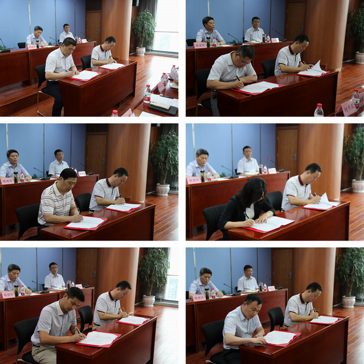 湖北公司執(zhí)行總經(jīng)理許金華依次與分管副總、技術(shù)部和財(cái)務(wù)部部門經(jīng)理簽訂了《湖北公司2016年度全員經(jīng)營任務(wù)指標(biāo)責(zé)任狀》、《經(jīng)營班子成員年度經(jīng)營目標(biāo)責(zé)任書》及《部門年度目標(biāo)考核責(zé)任書》。