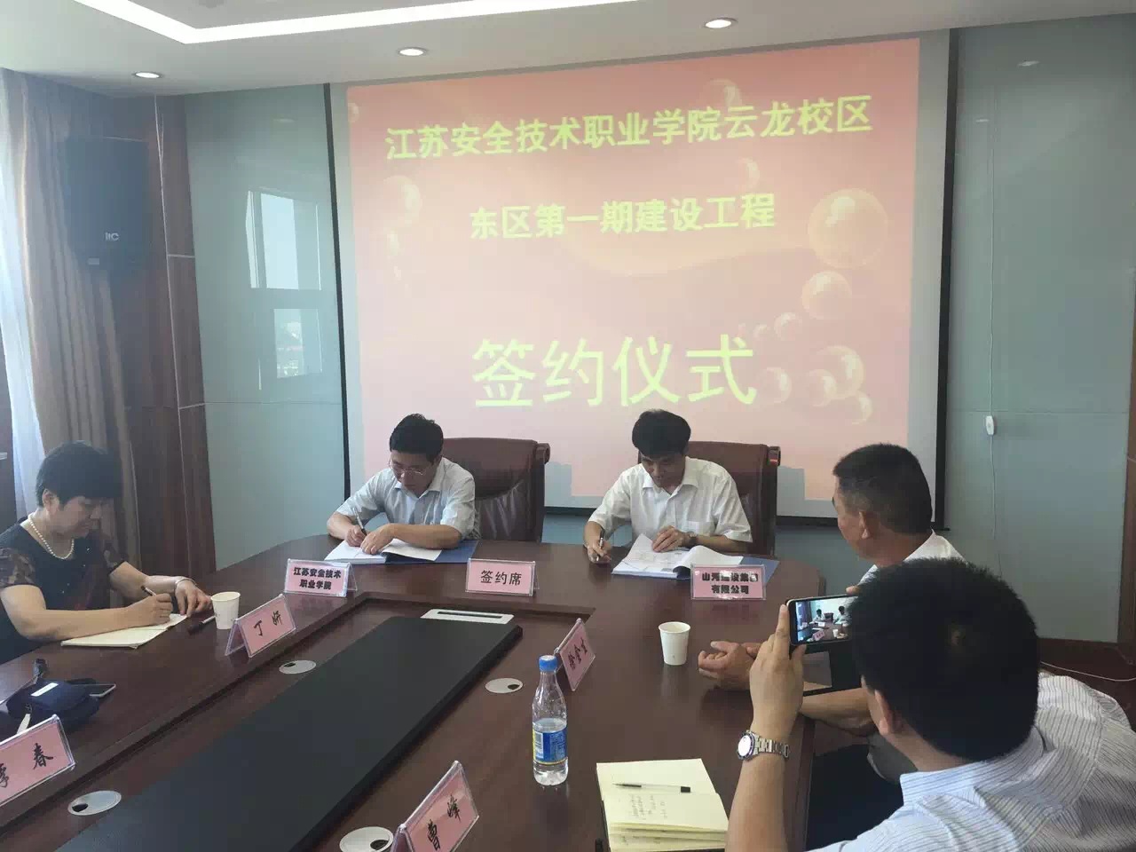 近日,山河集團(tuán)與江蘇安全技術(shù)職業(yè)學(xué)院舉行了項目簽約儀式,雙方就云龍校區(qū)東區(qū)第一期建設(shè)工程簽署了合作協(xié)議。江蘇安全技術(shù)職業(yè)學(xué)院院長、黨委書記徐建來,集團(tuán)公司總工程師程秋明、徐州公司總經(jīng)理陳偉等參加了簽約儀式。