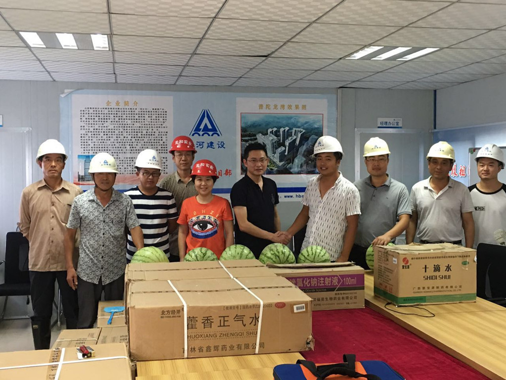 連日來,氣溫節(jié)節(jié)攀升,酷暑考驗(yàn)著堅(jiān)守在普陀龍灣項(xiàng)目施工現(xiàn)場的一線職工,更牽動著襄陽龍和公司領(lǐng)導(dǎo)的心。8月5日,受襄陽龍和公司董事長田龍梅委托,公司總經(jīng)理趙蛟、常務(wù)副總常誠、副總趙業(yè)臻、財(cái)務(wù)總監(jiān)張文全及工程部經(jīng)理劉西平等一行,帶著慰問及防暑降溫物品趕赴普陀龍灣項(xiàng)目現(xiàn)場,慰問高溫下堅(jiān)守崗位的一線職工,仔細(xì)詢問了他們在高溫天氣下的工作、生活情況,對一線職工高溫下堅(jiān)守崗位、辛勞工作的精神表示感謝,并叮囑職工在當(dāng)前持續(xù)高溫的不利條件下,要注意休息,防止中暑,做好安全生產(chǎn)工作。