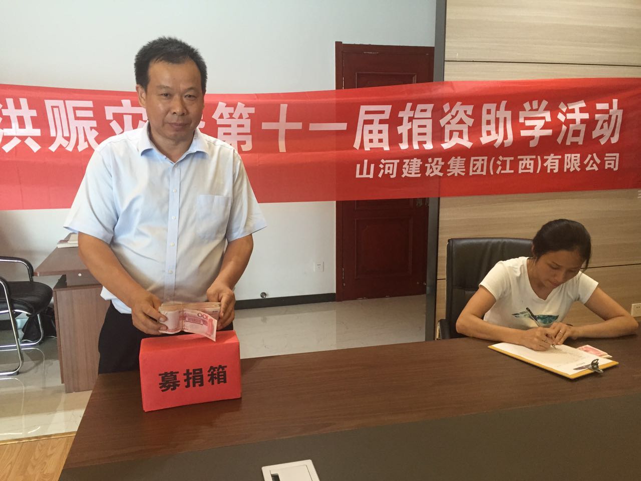 據(jù)了解,公司各項(xiàng)目部很大一部分員工家都是湖北武漢周邊地區(qū)。這次汛情給他們自己的家園帶來(lái)了一定程度損失和破壞。在收到募捐消息后,大家第一時(shí)間趕往施工現(xiàn)場(chǎng)募捐,都來(lái)不及擦試臉上的汗水,拍打身上的灰塵,便從口袋里掏出50元、100元、200元的鈔票投往募捐箱,都希望為災(zāi)區(qū)父老家園重建、徘徊學(xué)子重返校園盡自己的綿薄之力?;顒?dòng)截止,江西公司為災(zāi)區(qū)鄉(xiāng)親籌得資助款10萬(wàn)元,總經(jīng)理熊善杰還以個(gè)人名義在湖北公司捐助2萬(wàn)元。