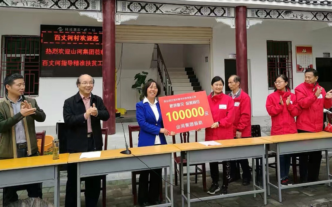2013年,為更好落實湖北“千企幫千村、脫貧奔小康”活動,山河集團董事長程理財一行來到百丈河村實地調(diào)研,并出資為百丈河村安裝20余盞太陽能路燈,參與修建村委會辦公大樓,改善了全村村民的生產(chǎn)和生活環(huán)境,為百丈河村安置就業(yè)30人。