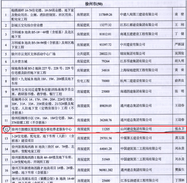 徐州市鼓樓區(qū)琵琶街道辦事處養(yǎng)老服務中心項目,隸屬徐州市鼓樓區(qū)琵琶街道辦事處,徐州市重點項目,是集養(yǎng)老、醫(yī)療、健身于一體的綜合性民生工程,項目建筑面積1.1205萬平方米,框架5層,造價約2800萬元,于2015年10月開始建設,目前項目已進入裝飾裝修階段,預計年底竣工;淮安新天地花苑項目由淮安縱橫房地產有限公司開發(fā)建設,總建筑面積15萬平方米,框剪結構,共5棟34層高層住宅,項目于2014年11月開工建設,目前已進入配套設施施工中,預計明年年初交付使用。
