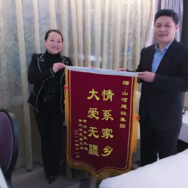 會后,黃岡市民政局局長石巧珍向程理財(cái)轉(zhuǎn)交市委市政府的感謝信,并代表民政局及市慈善總會向山河集團(tuán)贈送榮譽(yù)錦旗一面,感謝山河集團(tuán)在今年黃岡遭受嚴(yán)重洪澇災(zāi)害時(shí)作出的無私奉獻(xiàn)。