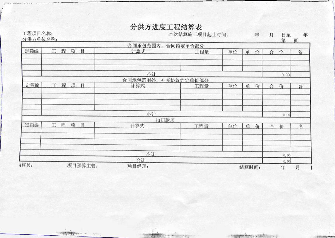 分供方結(jié)算書(shū)示例: