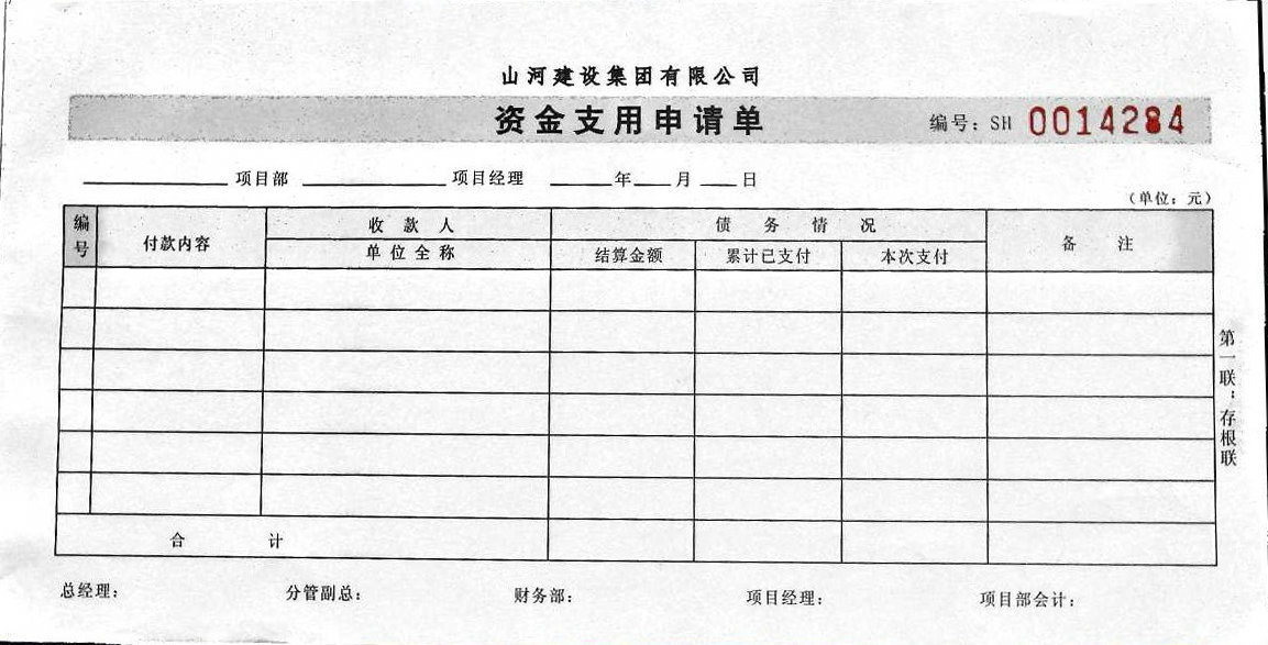 資金支用單示例: