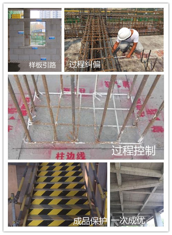 本工程充分發(fā)揚(yáng)“筑品質(zhì)山河,成百年基業(yè)”的企業(yè)愿景。在施工全過程中,質(zhì)量方面遵守樣板引路先行的原則,對(duì)過程進(jìn)行嚴(yán)格控制,發(fā)現(xiàn)問題及時(shí)糾偏,成品保護(hù)到位,確保一次成優(yōu)。