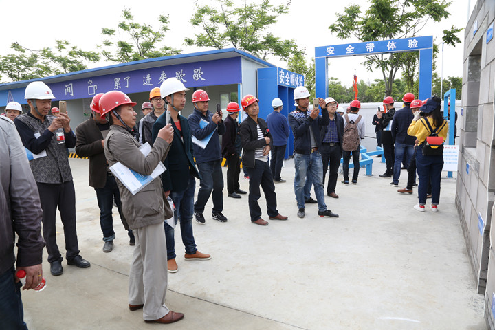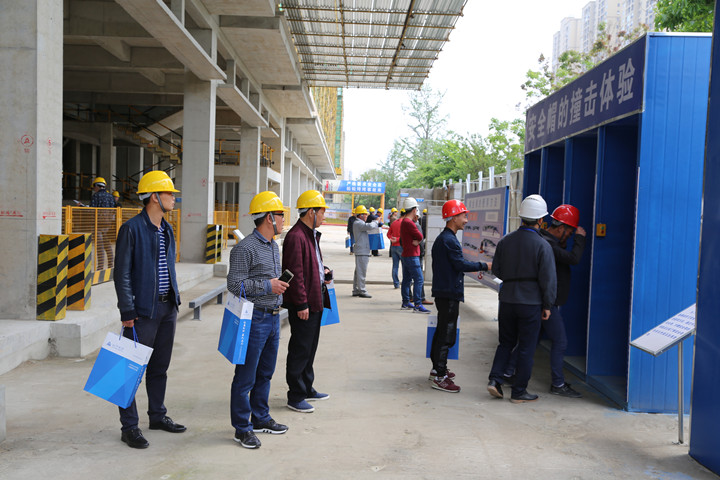 在施工現(xiàn)場設(shè)置的安全教育體驗區(qū),與會人員現(xiàn)場親身體驗安全帽的作用,即防止高空墜物傷人和物體打擊事故發(fā)生;體驗安全帶如何正確使用防止高處墜落事故發(fā)生;平衡木體驗,鋼絲繩使用展示以及臨邊洞口防護不到位造成的高處墜落事故演示等等。