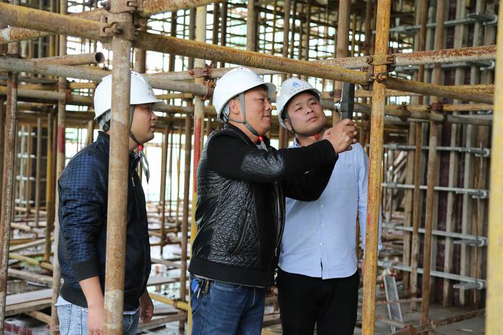 今年,他又被陳慧林調(diào)到新長(zhǎng)江香榭東沙項(xiàng)目,身份還是安全員,目標(biāo)是創(chuàng)“楚天杯”。一到工地,他立馬仔細(xì)地進(jìn)行檢查,發(fā)現(xiàn)扣件緊固度不夠,固定不規(guī)范,工人不服氣說,我們一直是這樣固定,憑什么說不夠,尹定華當(dāng)即拿扭力扳手現(xiàn)場(chǎng)演示給他們看,扣件受力應(yīng)為40-65NM,但現(xiàn)場(chǎng)的扣件有許多只有10-20NM,大家才無話可說,馬上改正。
