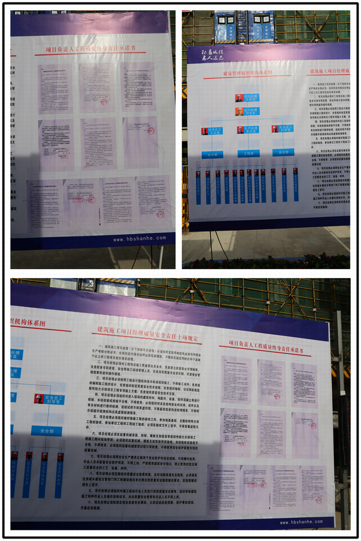 堅(jiān)持安全文明施工標(biāo)準(zhǔn)化,辦公區(qū)、生活區(qū)、施工區(qū)布置三區(qū)分離,施工現(xiàn)場(chǎng)大門設(shè)置人行通道,保證人車分流;在進(jìn)場(chǎng)大門左側(cè)醒目位置設(shè)置“九牌三圖”,發(fā)揮班前講臺(tái)作用,每天清晨宣貫工作作業(yè)相關(guān)注意事項(xiàng),項(xiàng)目組織機(jī)構(gòu)及五方責(zé)任承諾公示、門衛(wèi)打卡、視頻監(jiān)控、車輛沖洗、場(chǎng)區(qū)降塵、重大危險(xiǎn)源公示欄等嚴(yán)格執(zhí)行標(biāo)準(zhǔn)。