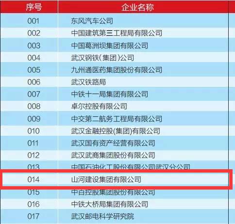 2017年武漢企業(yè)100強(qiáng)發(fā)布 山河集團(tuán)位列第14位