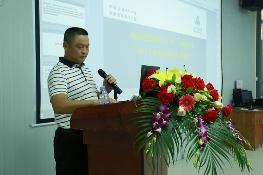山河集團(tuán)廣東公司副總經(jīng)理趙衛(wèi)對SSGF新建造體系的發(fā)展以及優(yōu)勢與參觀人員作了分享,讓大家感受到建筑行業(yè)一場新革命的到來;紫辰花園SSGF示范項(xiàng)目的項(xiàng)目經(jīng)理佘志斌就施工過程中的經(jīng)驗(yàn)與參會人員進(jìn)行簡單交流。