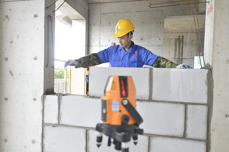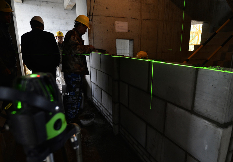 評委們拿著激光儀、靠尺等測量工具,在眾多選手的見證下,對砌體的水平度、垂直度、灰縫的考量,均精確到一個(gè)毫米為單位。對木工配模和模板安裝,除了現(xiàn)場技能考察外,還要考察比賽前的測量放線,模板定位控制,均以毫米為單位計(jì)算。