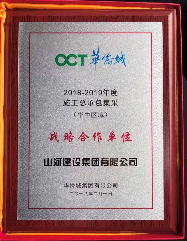 4月26日,山河建設(shè)集團(tuán)被華僑城集團(tuán)授予戰(zhàn)略合作單位稱(chēng)號(hào)。目前,在湖北、河南、江西三省的華中地區(qū),被華僑城集團(tuán)授予戰(zhàn)略合作單位的僅三家,山河建設(shè)集團(tuán)位列其中。