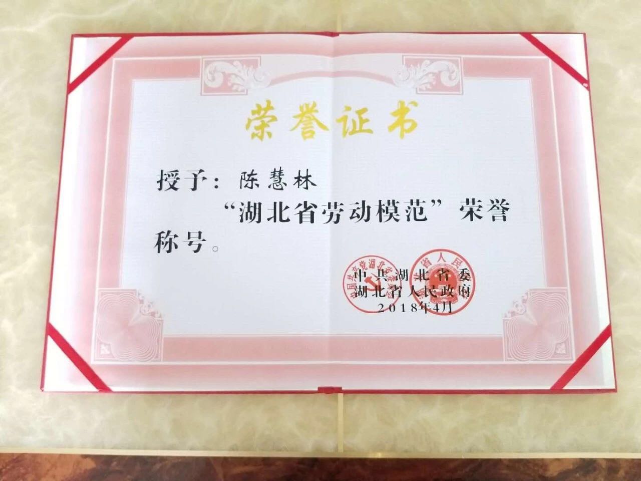 山河人的驕傲|陳慧林獲“湖北省勞動模范”光榮稱號