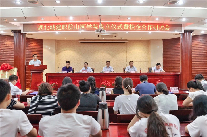 6月8日下午,位于風(fēng)景秀麗的武漢東湖高新技術(shù)開發(fā)區(qū)藏龍大道,在湖北城市建設(shè)職業(yè)技術(shù)學(xué)院培訓(xùn)中心大樓里,山河集團黨委書記、董事長程理財與湖北城市建設(shè)職業(yè)技術(shù)學(xué)院黨委書記程超勝共同為“山河學(xué)院”揭牌。這標志著山河集團打造人才梯隊建設(shè)、實施人才興企戰(zhàn)略,在湖北城建職院設(shè)立“山河學(xué)院”的校企合作正式啟動。
