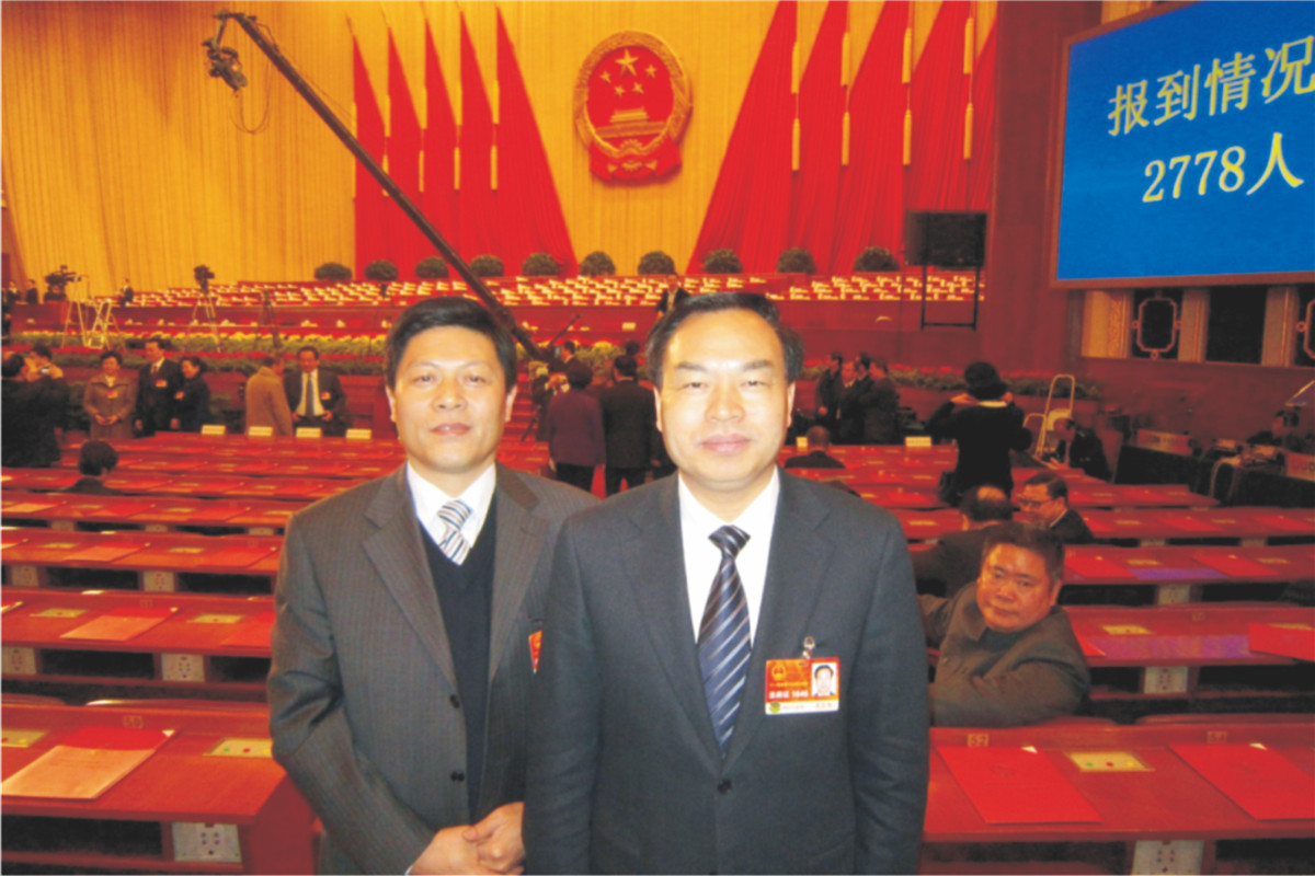 全國(guó)人大會(huì)議期間,山河集團(tuán)黨委書(shū)記、董事長(zhǎng)程理財(cái)(左)與重慶市委副書(shū)記、市長(zhǎng)唐良智(右)合影