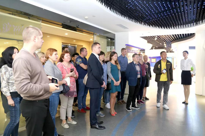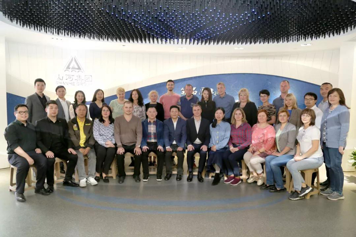 訪華團(tuán)一行近20人首先參觀了企業(yè)展示中心,了解山河集團(tuán)的發(fā)展歷程和業(yè)務(wù)范疇。