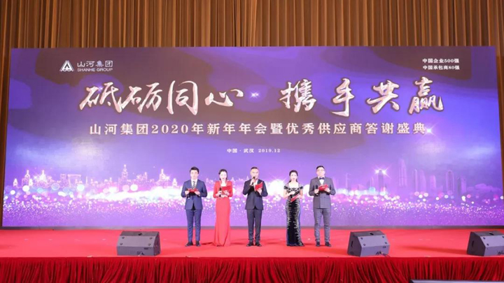 12月29日,在美麗的東湖之畔,“砥礪同心 攜手共贏——山河集團2020年新年年會暨優(yōu)秀供應(yīng)商答謝盛典”在武漢東湖國際會議中心盛大舉行。特邀領(lǐng)導(dǎo)和嘉賓,優(yōu)秀供應(yīng)商代表,控股集團、建設(shè)集團、地產(chǎn)集團全體人員及區(qū)域公司、分子公司員工等1300余人齊聚一堂,共同見證了這場年度盛宴。