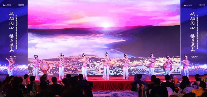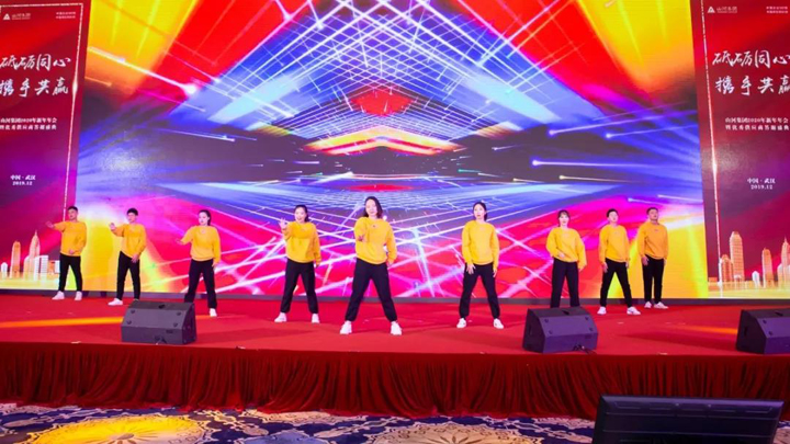 伴隨著綿長柔美的音樂和絲絲入扣的鼓聲,一支充滿濃郁民族風(fēng)情的開場舞《打秧鼓》拉開了年會的序幕。打起秧鼓,跳起秧舞,祈求來年風(fēng)調(diào)雨順、五谷豐登,預(yù)示著新年播種希望,山河再譜新篇。