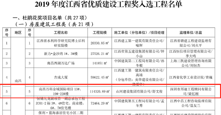 “杜鵑花獎(jiǎng)”是江西省建設(shè)工程質(zhì)量最高榮譽(yù),本次共有21項(xiàng)房屋建筑工程入選,這也是繼地鐵萬科•時(shí)代廣場(chǎng)項(xiàng)目之后,江西公司第二次獲此殊榮。