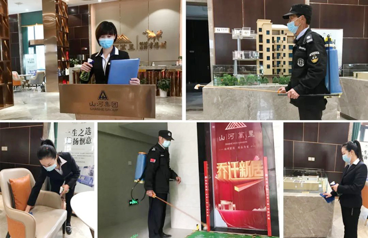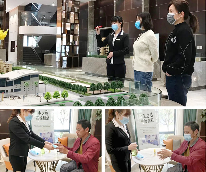 2.從停車場(chǎng)到前臺(tái)、售樓處沙盤、接待區(qū)、辦公室等公共區(qū)域每天進(jìn)行兩次全方位、零死角的消毒處理,小到門把手、桌椅板凳等也不放過,通過高頻次的消毒,降低交叉感染風(fēng)險(xiǎn),不留安全隱患。