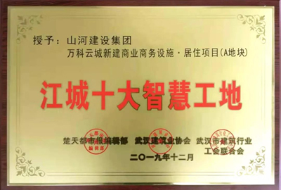 12月29日,2019年江城“雙十大”工地選樹活動(dòng)頒獎(jiǎng)典禮舉行。山河建設(shè)集團(tuán)項(xiàng)目管理公司承建的萬科云城新建商業(yè)商務(wù)設(shè)施、居住項(xiàng)目(A地塊)榮獲“江城十大智慧工地”榮譽(yù)稱號(hào)。