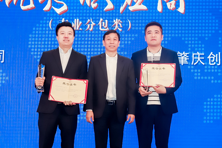 ▲常務(wù)副總經(jīng)理劉永國為優(yōu)秀供應(yīng)商(專業(yè)分包類)頒獎