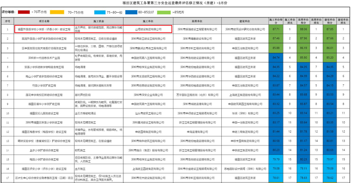 近日,在深圳市福田區(qū)建筑工務(wù)署組織的第三方安全巡查評(píng)估中,山河建設(shè)集團(tuán)深圳公司承建的福田區(qū)外國(guó)語學(xué)校小學(xué)部項(xiàng)目綜合評(píng)分名列第一。