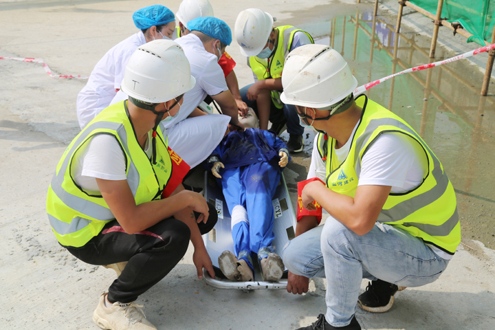 發(fā)現(xiàn)事故的現(xiàn)場(chǎng)管理人員馬上向項(xiàng)目負(fù)責(zé)人和安全員匯報(bào)了情況,項(xiàng)目負(fù)責(zé)人立即做出指示,小心照顧墜落“工人”但不可輕易移動(dòng),做好安撫工作。