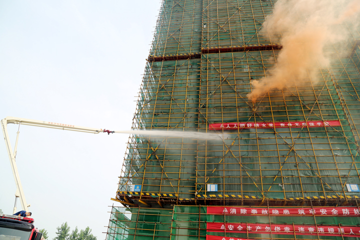 “失火了!”一聲尖銳急迫的叫喊聲,打破了工地的寧?kù)o。隨著消防煙霧彈的開(kāi)啟,在建大樓頓時(shí)濃煙滾滾,“火勢(shì)”迅速向四周蔓延。