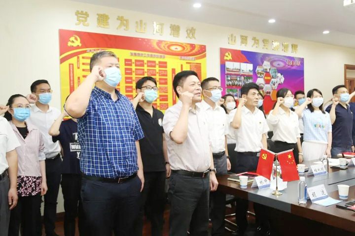 山河集團(tuán)黨委書記、董事長程理財(cái)帶領(lǐng)全體黨員重溫入黨誓詞,集團(tuán)總部機(jī)關(guān)黨支部黨員潘蕾領(lǐng)學(xué)《黨章》,省檢察院第八檢察部黨支部黨員劉洋帶領(lǐng)大家共同學(xué)習(xí)了鄂檢“新十條”、《關(guān)于充分發(fā)揮檢察職能依法保障復(fù)工復(fù)產(chǎn)促進(jìn)經(jīng)濟(jì)社會(huì)加快發(fā)展的意見》。