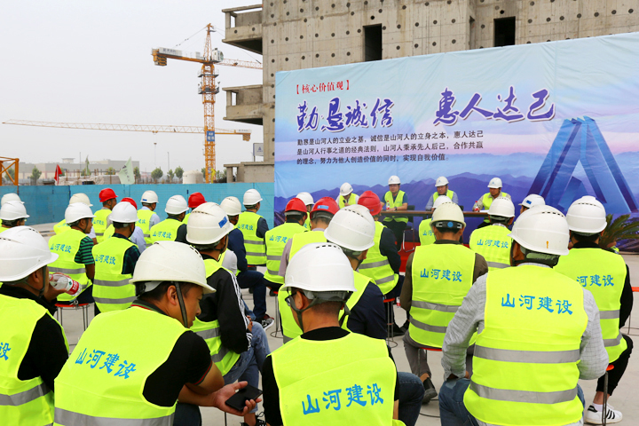 9月26日,山河建設(shè)集團河南公司2020年“質(zhì)量月”活動總結(jié)暨項目管理經(jīng)驗交流會在藍光王府井商業(yè)小鎮(zhèn)項目部舉行,對“質(zhì)量月”各項活動開展情況與成效進行通報,并通過經(jīng)驗交流助推項目管理水平不斷提高。河南公司副總經(jīng)理詹成義出席活動。
