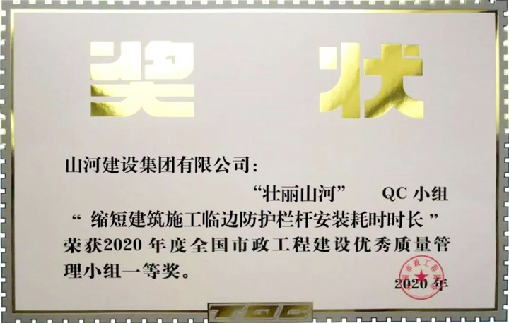 9月26日,在安徽合肥舉行的2020年度全國市政工程建設(shè)優(yōu)秀QC小組成果交流會上,山河建設(shè)集團(tuán)云南(廣西)公司遠(yuǎn)洋彩虹天地商業(yè)廣場項目“壯麗山河”QC小組發(fā)布的“縮短建筑施工臨邊防護(hù)欄桿安裝耗時時長”成果以小組第一名的成績榮獲“2020年度全國市政工程建設(shè)優(yōu)秀質(zhì)量管理小組一等獎”。這也是云南(廣西)公司第二次獲此殊榮。