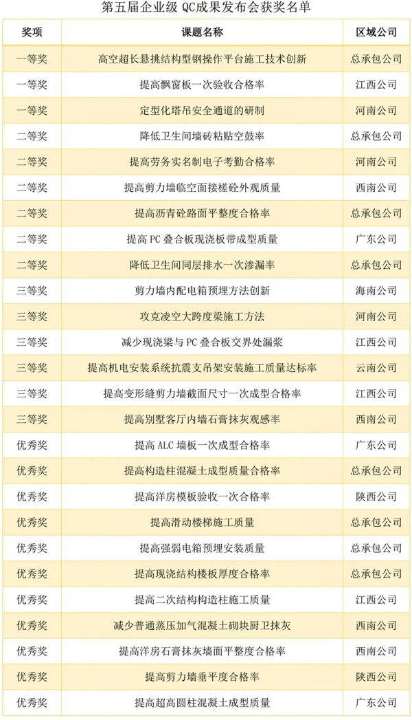 企業(yè)級 QC 成果:QC小組活動是集團(tuán)堅持不懈開展的一項(xiàng)重要活動,對提高質(zhì)量、降低成本、創(chuàng)造效益起到了積極的作用。企業(yè)級QC成果的發(fā)布,加大了優(yōu)秀成果的展示交流,促進(jìn)了創(chuàng)新成果的推廣應(yīng)用,推動集團(tuán)質(zhì)量管理工作始終向著健康方向發(fā)展。