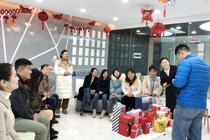 在陣陣歡笑聲中,跨年活動在員工風采展示區(qū)拉開序幕,活動的“重頭戲”——交換禮物隨之開始。大家事先準備好的精美禮物整整齊齊地碼在桌子上,并一一編上號碼。通過抽獎的方式,每個人都收到了屬于自己的一份驚喜。拆開禮物的一剎那,發(fā)自內(nèi)心的喜歡溢于言表。參加活動的員工紛紛表示,這是來自同事的真心祝福,寓意深刻,是最難忘的一份禮物。